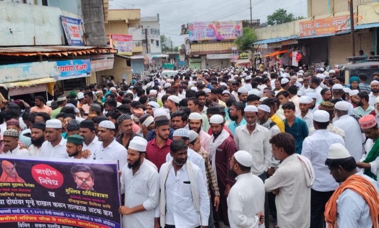रामगिरी महाराज व आमदार नितेश राणे यांच्या आक्षेपार्ह विधानाच्या निषेधार्थ मुस्लिम समाजाच्यावतीने मुक मोर्चा व धरणे आंदोलन
