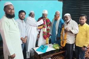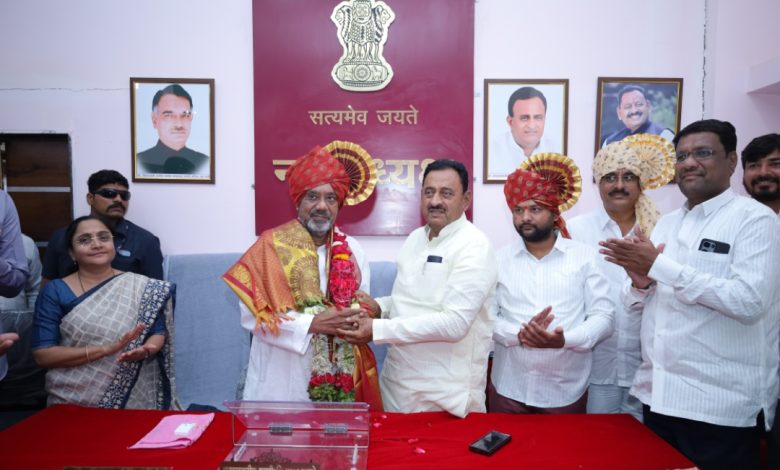नगराध्यक्ष निवडीसाठी चाकूर नगरपंचायतच्या सभागृहात सोमवार दि.26 मे 2025 रोजी उपविभागीय अधिकारी तथा पिठासीन अधिकारी डॉ.मंजुषा लटपटे यांच्या अध्यक्षतेखाली विशेष बैठकीचे आयोजन करण्यात आले होते.एकच नामनिर्देशन पत्र असल्यामुळे डॉ.लटपटे यांनी नगराध्यक्ष म्हणून करीम गुळवे यांच्या नावाची घोषणा केली.यावेळी मुख्याधिकारी प्रतीक लंबे उपस्थित होते.त्यानंतर सहकार मंत्री ना. बाबासाहेब पाटील यांच्या उपस्थितीत करीम गुळवे यांनी नगराध्यक्ष पदाचा रीतसर पदभार स्वीकारला. ना.पाटील यांनी करीम गुळवे यांचा सत्कार करून शुभेच्छा दिल्या.नगराध्यक्ष म्हणून गुळवे यांच्या नावाची घोषणा होताच कार्यकर्त्यांनी गुलालाची उधळण व फटक्याची अतिषबाजी करीत आनंदोत्सव साजरा केला.तसेच चाकूर व अहमदपूर तालुक्यातील विविध राजकीय पक्षाचे पदाधिकारी, कार्यकर्ते व सामाजिक संघटनेच्यावतीने करीम गुळवे यांचा सत्कार करण्यात आला.