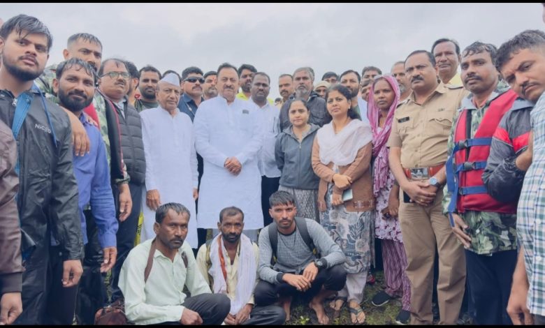 जोरदार पावसातही सहकार मंत्री ना. बाबासाहेब पाटील चिलख्याच्या बांधाऱ्यावर,अतिवृष्टीमुळे अडकलेल्या तीन मजुराची सुखरूप सुटका